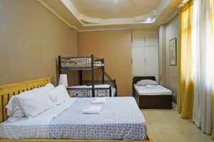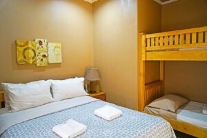 Experience the comfort and warmth of Bella Villa, a charming villa designed to feel like a home away from home. With six spacious rooms, the villa caters to families or groups seeking relaxation and convenience. One of the rooms features a queen-size bed and three single bunk beds, perfect for larger groups. The remaining rooms are equipped with a combination of single bunk beds and single beds, offering versatile sleeping arrangements for all guests.